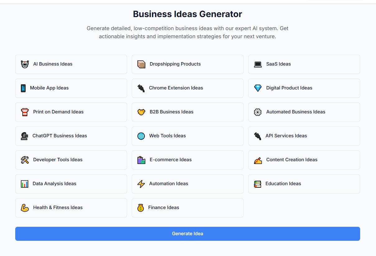 Creating a successful Shopify app requires a combination of market insight, technical skill, and business acumen. By focusing on genuine merchant needs and delivering exceptional value, you can build a profitable app business in the thriving Shopify ecosystem. Use our generator above to spark ideas for your next Shopify app venture!